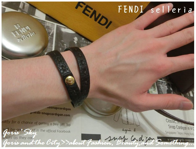 FENDI selleria 咖啡色小牛皮金牌雙圈手環(實搭)/換季折扣5折!!