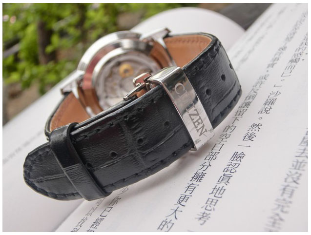 CITIZEN黑色皮革機械錶/讓時間為自己停留,創造自己的風格態度!