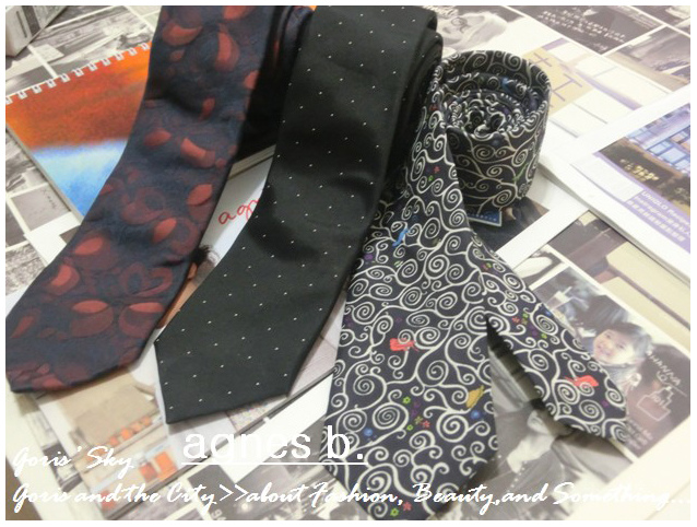 agnes b. 2014黑夜中樹上唱歌彩繪窄版領帶/三條窄版領帶get !