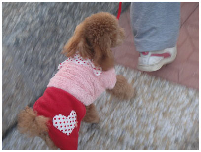難得回家,就載我家的小貴賓去運動,話說他只要被綁上鍊子後,就會很high,就會知道我們要帶她出去。但如果我們一直在換衣服之類的,都沒有理他,他就會跑到一樓去躲起來,怎麼抓都抓不到,應該說就會很難抓,他大概就猜到我們準備把它關進籠子了,或者是把外出的寵物打開放在地上,他就會很快地跑進去趴著,很難拉出來...大概就覺得我們應該也是要帶她出去了...哈