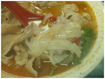 酸辣豬肉河粉,湯頭看起來有點油,喝起來也真的有點油,但就不是那種會讓你真的覺得很油膩的油,吃起來酸酸甜甜,很好喝...。然後豬肉好嫩,好甜...