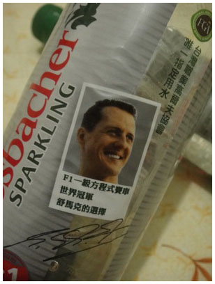 F1賽車手舒馬克代言...哈,但卻是高球比賽指定用水...