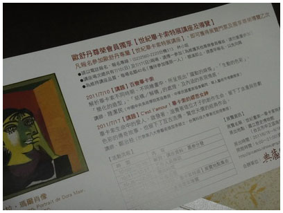 然後還有送一張畢卡索特展講座以及導覽的說明