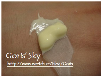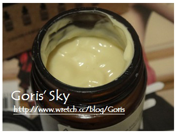 打開來就是全圓罐式的挖取設計。質地為淡淡的米黃色,因為我已經用了一陣子了,明顯可以看到下陷不少。而這樣的圓罐設計,最大的好處當然也就是可以把它用的非常非常乾淨。