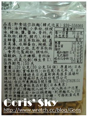 仔細來看一些成分,雖然是油炸麵身,但一包四分,每份30g,熱量僅140大卡,其實還算蠻能解肌卻不會太誇張的食品,所以說,很適合平常買著放在辦公室,真的餓的話,可以拿來解肌這樣。