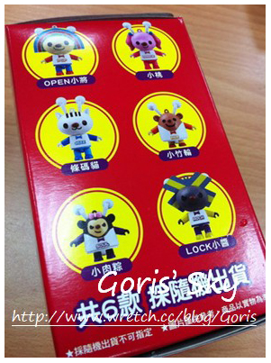 哈哈哈哈哈哈哈,竟然是OPEN將!運氣會不會太好了...。而且還真的是蠻可愛的耶...,手、腳、頭都可以動...。換第一支就換到OPEN將,瞬間就為這次的7-11集點活動畫下句點...,雖然我比較喜歡條碼貓,但也就算了...。哈