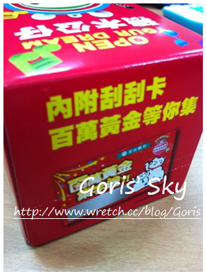 然後就是這次的噱頭,有刮刮卡,可以集字換黃金...但我通常都不相信這種活動,他少哪一個字故意不印你也不知道啊...。