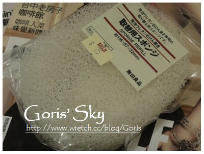 不過後來除了看到fino大的推薦,加上同事間也有人真的用過這塊無印良品的皂盤海綿,加上它真的很便宜,就只要75元,比起潔米拉的大理石皂盤450元...實在便宜很多很多,也因此,最後我想說就去買來用看看好了。而我是只有買海綿,而沒有買他另一組的有底座的海綿組,那個會稍微貴一點。但我也不是因為他比較貴就不買,而是我會認為那個底座感覺作用不大,因為它如果真的會流,還是會積在下面...。