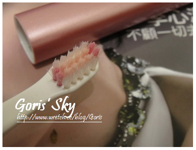 此外,他的刷頭部份做的比較小,也很方便深入口裡的每個部位,包括各個深處都還蠻方便的,而這樣比較小的刷頭,大概一次就是刷一顆牙齒,慢慢地、認真刷遍每一顆牙齒。