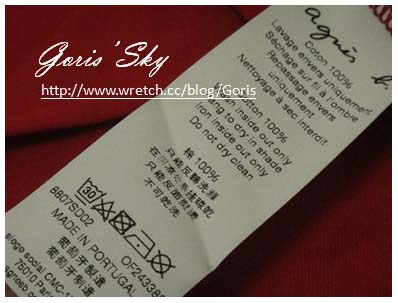 現在的agnes b.基本款T,一樣還是100%棉,以及葡萄牙製。不過,僅管都是基本款T,但版型、材質也並非萬年不變,有時後隨著每季的不同,T的版型也會略有不同,甚至有時後材質上比較厚、有時後則是比較薄,端看該季的設計為主。