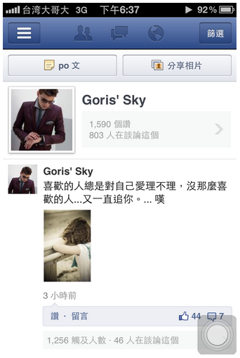 然後,一個在一般版的Facebook app加好友的功能,在「專頁小幫手」就成為新按讚的動態。