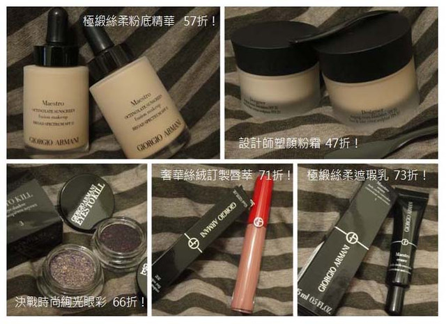 前陣子美國因為感恩節的關係,各個相關美妝購物網站也都推出Sale的活動,GIORGIO ARMANI美國官網也推出八折的活動,剛好也想再補些GIORGIO ARMANI的東西,託在Oregon的朋友幫忙用美國的信用卡刷,Oregon免稅加上官網限定美國境內,也限定美國信用卡,就和朋友趁這次8折買了不少GIORGIO ARMANI的東西,只是Sale貨斷的也快,特別是一些熱門色號等,而且有些商品美國也不一定有。