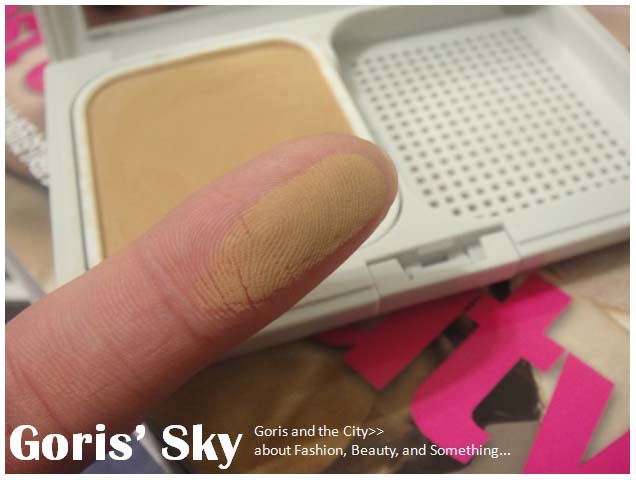 該自律循環控油粉餅強調的是零含油粉體,並主打控油,修飾以及遮瑕等,單用手指去觸摸自律循環控油粉餅,你會感覺到其粉體相當清爽、輕盈,但整個粉質是相當綿密而且細緻的,你會看見觸摸過粉體的肌膚,粉與粉之間抓得相當緊密,其細緻的粉體觸感,單是從觸摸就很有感覺。