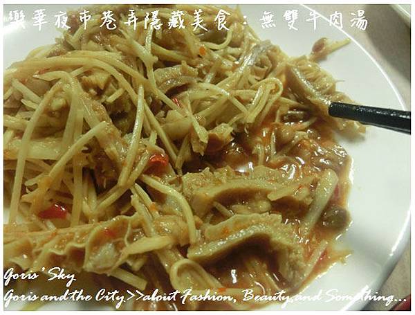 然後,雖然我們只是點牛肉片湯,老闆可能看我們點的多,也沒有點到帶筋牛肉,也特別加了兩塊給我們嘗嘗,那入口即化的筋肉口感相當特別,不似一般我們在吃的半筋半肉麵,口感很難忘,也真的好吃。