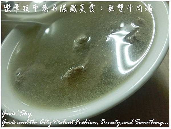 無論如何,這真是一家很樂華夜市隱藏阪的美食,畢竟應該也可以算是樂華夜市唯一的牛肉湯,而且還是很有台南風味的牛肉湯,除了乾拌不是那麼推薦外,來喝碗湯,吃碗蒜頭乾麵,甚至是搭配個燙青菜,感覺也很不錯,老闆和老闆娘會不斷地跟你說他們的牛肉湯有多健康...,喝多身體會很好,這大概是優點也是缺點,因為如果你只是想安靜的吃飯,碰上這樣盛情難卻的老闆,也真的是很累...,再加上店裡規矩也真的一大堆,吃起來也戰戰兢兢的倒是....。
