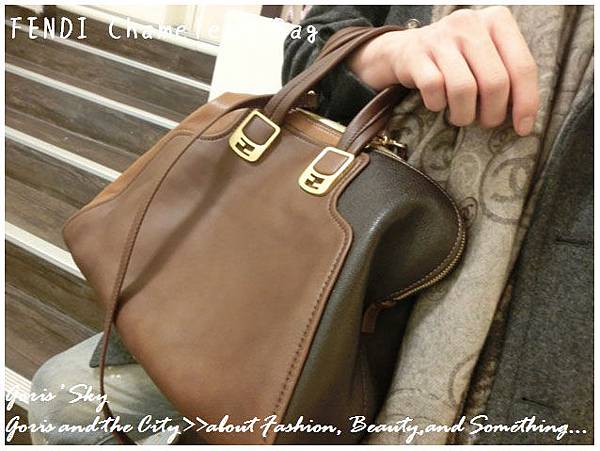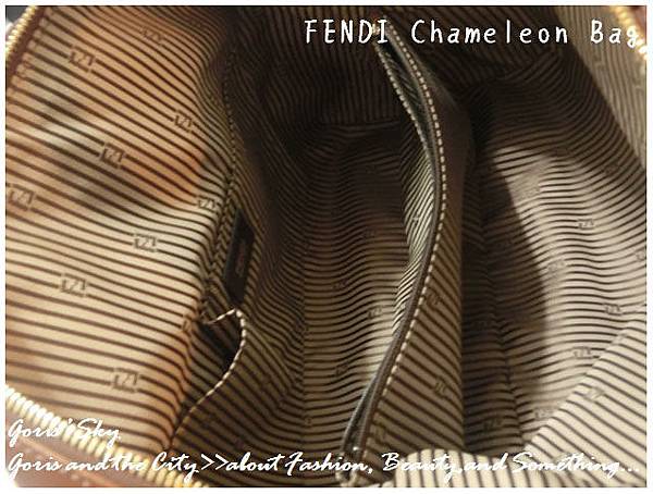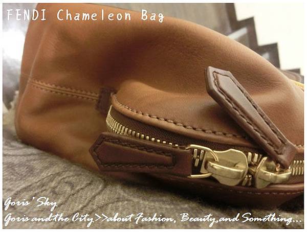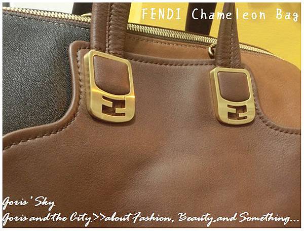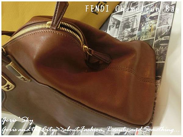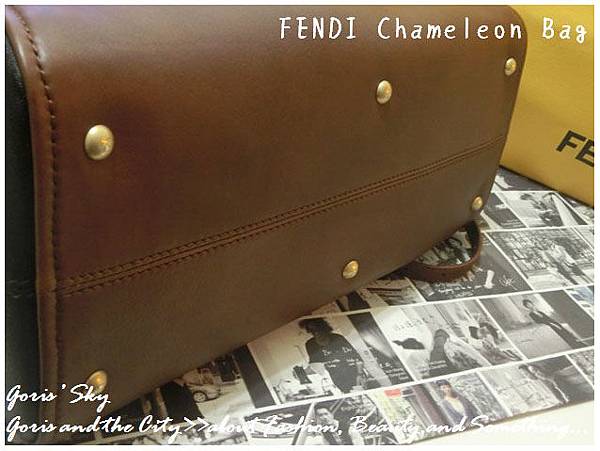 你一定也看過FENDI那充滿FF LOGO緹花布的恐怖設計...,我覺得如果那樣的設計拿來襯內裡可能也就算了,如果整個包的外表都是,就真的相當可怕...。這款Chameleon,主要的FENDI LOGO就僅有握把扣環的那個金色FF 扣,一邊兩個,兩邊4個,金色消光的設計,不過於絢麗,卻又有種低調奢華的光芒。
