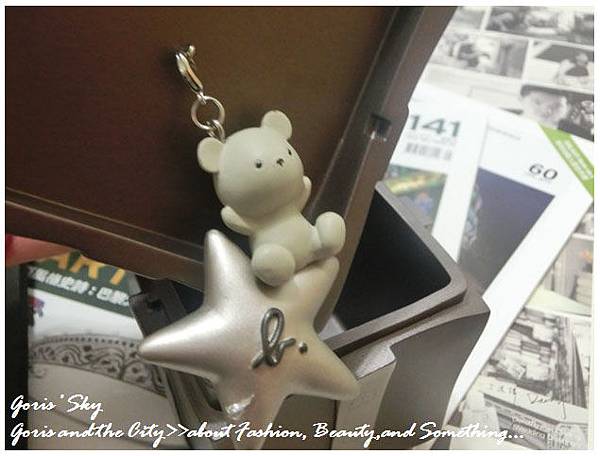 如果只是個禮物收納盒其實也就是那樣,但沒想到這個收納盒開蓋時,掛著一個小熊坐在星星上的吊飾,就這樣垂著,可拆式的設計,也可以另外做成吊飾使用,挺可愛的設計,儘管你知道你一開始買的就是個禮物收納盒,本來就是要用來裝下自己的驚喜和收藏,但卻意外地在一開始的打開那剎那,就給了自己驚喜。