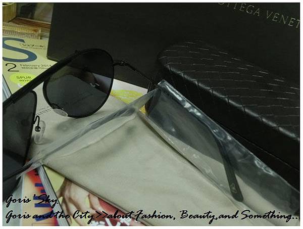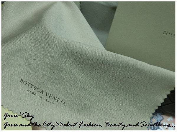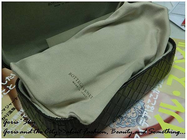 BOTTEGA VENETA太陽眼鏡包裝上還真的挺花功夫的,一般來說裡頭就是單純用拭鏡布包覆,倒是還特別有一個防塵袋裝助。