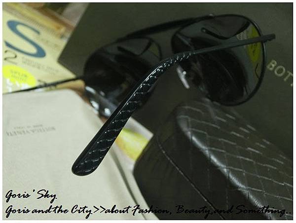 說真的,這支BOTTEGA VENETA編織雷朋式太陽眼鏡單看眼鏡盒就真的挺吸引人,雖然並非真的編織皮革,但單是這樣的編織壓紋就相當美觀,不過如果說真的是一個編織皮革時...那到底是買眼鏡還是盒子都有些搞不太懂了。