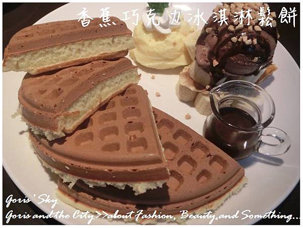 淋上的巧克力醬,是也好吃 ...但我對甜實真的比較沒辦法 ...,所以大多就是沾奶油,或沾一點冰淇淋搭配吃,這樣的"甜醬",對我來說,就比較困難了,但必須說,鬆餅真的本來單吃就相當好吃了!