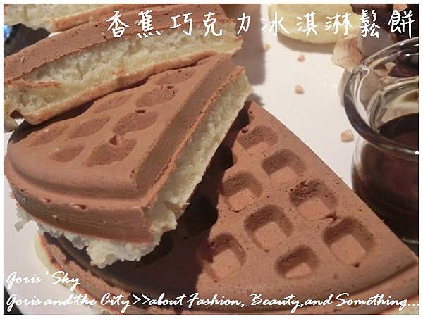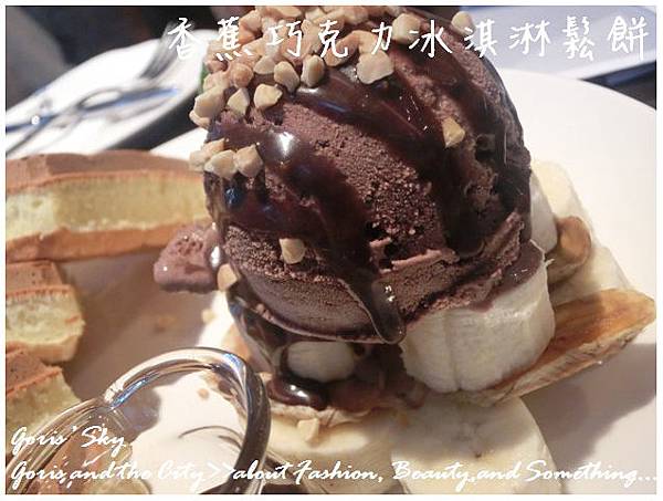 鬆餅的部分也算是咖啡弄的招牌,其實甜的東西是好吃,但我對甜實在比較沒辦法,主要也是心裡的罪惡感會一直跟妳說會變胖 ...,除了一塊鬆餅外,還有香蕉,上面有巧克李冰淇淋,以及旁邊一球奶油可以裹鬆餅,當然就是巧克力醬 ...,現做好鬆餅真的非常熱,也因為夠熱,就相當好吃。