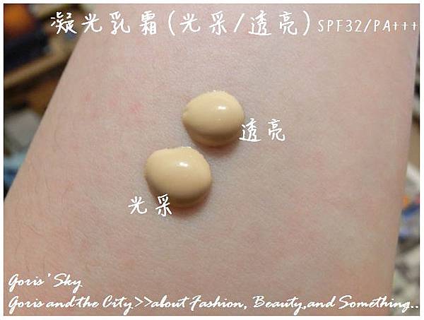繼上次分享了我自開櫃以來購買的最愛的魅光修容#22後,接著就是我也很喜歡的凝光乳霜 !說真的 ...,這名字實在也困惑,"凝光乳霜"實在很不像是彩妝品,不過因為有還蠻高的防曬係數SPF32/PA+++,所以大致也就能理解,只是同一凝光乳霜共有光采和透亮兩款,我為了這兩者到底有什麼不同,諮詢了好多次,因為單從中文說明來看 ...,一點都看不出來,你看他框框裡的說明...都是一樣的,所以真的非常奇怪,而且對我的中文理解來說,光采和透亮可以算是相似詞,但就諮詢後的結論是光采比較像是全臉的勻亮,透亮則是具恐修飾的柔焦感 ...,所以到底是我中文理解有問題,還是這凝光乳霜命名本來就奇怪 ...