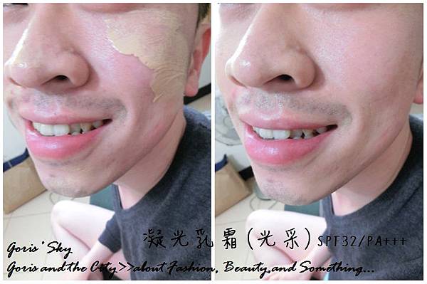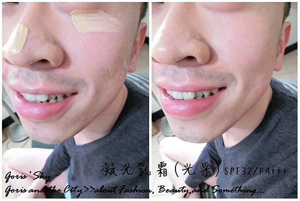 據櫃姐的說法是這瓶凝光乳霜使用很簡單,就算不用照鏡子也很容易使用,而且有很不錯的修飾力並且給予肌膚透亮,有點結合隔離霜+粉底的概念 ,創造出宛如第二層肌膚的感覺,使用後就可以不用再用粉底液,直接使用粉餅做加強修飾或定妝即可。