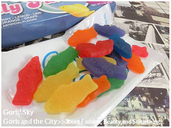 拆開後,才發現是CandyCrush中的魚,就是會吃掉你一大堆方塊的彩色魚 !! 糖果的香味很撲鼻,就真的很糖果,我本來以為是硬的那種糖果,拆開來才發現是軟糖,那種應該是有點類似的小熊軟糖。各種顏色也是不同的口味,不過整包的量就這麼多,仔細再去對照一包要166元台幣,拆開娜一霎那,似乎又覺得有些貴了 ...。