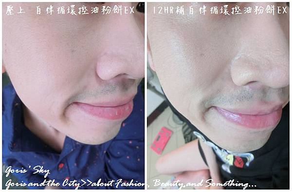 不過,我覺得這塊IPSA自律循環控油粉餅EX最好用是拿來補妝,之前IPSA自律循環控油粉餅可能用來打底也不太需要補妝了,但IPSA自律循環控油粉餅EX反而因為粉體細,卻又夠鬆,能夠透過補妝的同時,去吸附過多油脂,卻不會厚粉,也不會結塊 ...,以右邊這張是用IPSA自律循環控油粉餅EX來補妝,你會看見,補妝的同時,並非全部都讓你"變粉",而是透過吸附油脂的同時,還能綻放一種透亮感,有點像是粉體和油脂和平共處後,所誕生的自然補妝感,但你的臉在經過IPSA自律循環控油粉餅EX補妝後,已經不會泛油,儘管看起來好像又有油光感,但你去觸碰臉部肌膚,其實是乾爽的,但透出來的光澤感,就是粉體和油脂的Match,是一塊補妝也能補得很漂亮的粉餅,所以其實我不太拿它來打底,過去舊款的IPSA自律循環控油粉餅可能適合打底,不過新款的IPSA自律循環控油粉餅EX就比較適合用來補妝,就好像一種隨身攜帶的吸油面紙,卻能夠越補越好看。