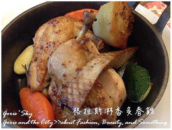 其實我本來想吃燉菜的,之前來吃也是吃燉菜,想說一年沒有吃了,有些懷念 ... 後來Shelly跟我推薦這個格拉斯淋香炙春雞相當好吃,又因為作法會有其他的菜,有點類似燉菜的概念,我就想說也可以吃吃看,儘管真的不是太便宜,特別是加了250元套餐後,就要730元了 ...,但確實,這道菜實在沒令人失望。