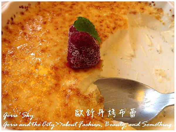 再來也是必吃的歐舒丹烤布蕾,我一直覺得一塊實在很大 ...,而且又要220元,雖然說我很喜歡烤布蕾,吃起來是很爽,但還是覺得太多,如果可以份量除以二,價錢除以二,或者直接附在套餐其實也都不錯 ...,不然一塊220元,一個人吃實在有點太多,建議可以兩個人SHARE,除了基本的烤布蕾外,上頭還有三顆蔓越莓,新鮮好吃,酸酸甜甜,也能解過多的烤布蕾的膩。
