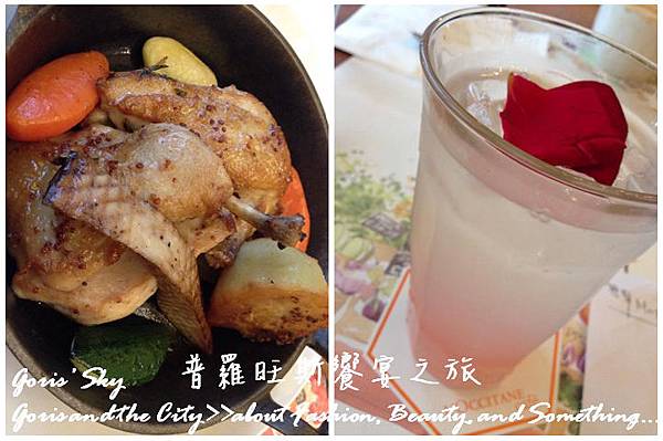 格拉斯淋香炙春雞除了大概快有半隻雞外,旁邊同樣有類似相關燉菜的料理,包括紅蘿蔔、大黃瓜、馬鈴薯、洋蔥等 ...,這是L'OCCITANE歐舒丹 CAFE厲害的燉煮概念,也因為一起燉煮,雞肉的部份也融入蔬果的清香,紅蘿蔔的原始味道也都被破壞了,如果你怕吃紅蘿蔔,這個真的很能嘗試,一嗯位完全就是一種清甜香,這也是為什麼我想再來吃L'OCCITANE歐舒丹 CAFE普羅旺斯燉菜的原因,因為可以吃到很多不同的蔬菜,卻是一種全新的調味,剛好在這格拉斯淋香炙春雞中,也能吃到。
