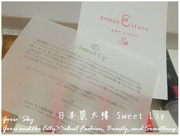 不過,我自己覺得這個榮太樓老舖Sweet Lip可以吃的糖唇蜜確實可以作為一些情趣的使用,像是其實男女接吻時,男生其實不太會喜歡女生雙唇上有唇膏或唇蜜,除了有色彩的困擾外,通常味道也不是太好聞(或者你可以說是男生不習慣),而且通常唇彩會有些黏 ...,不一定在接吻時是舒服的,但如果是使用這個榮太樓老舖Sweet Lip可以吃的糖唇蜜,其實吃起來甜甜的,味道也不錯,確實是會讓人想要一直舔,或一直吃的,所以如果說作為一種接吻前的stand by,確實是一種很不錯的情趣,也可以參考看看。
