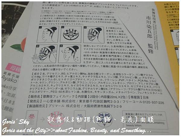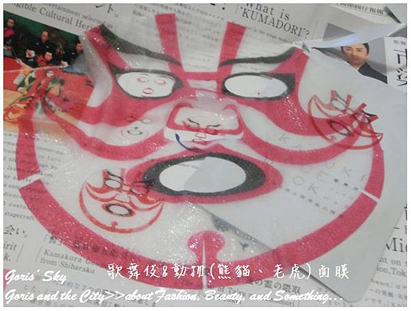 首先最一開始看到的其實是這個類似中國京劇概念的歌舞伎面膜,這個甫上市之時還沒那麼有興趣,只覺得很酷,而且樣子其實沒那麼討喜 ...,不過是後來上野動物園(熊貓/老虎)造型面膜跟著推出後,就一起買,想說一起記錄。