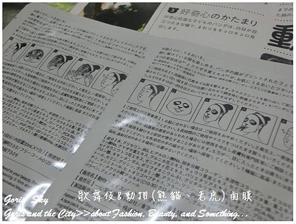 同樣是於面膜背後有相關使用步驟示意,也一起拍一下成份給大家看,我是覺得上野動物園(熊貓/老虎)面膜敷起來和歌舞伎蠻不同感覺的,應該是不同成分取向,而無論是熊貓,或者是老虎,背面都有專屬的示意圖,你看見那張牙舞爪的老虎實在很可愛,然後熊貓是吃竹子,看起來憨憨的這樣,這真的要稱讚一下無論是歌舞伎,又或者是上野動物園(熊貓/老虎)面膜在設計上的用心。