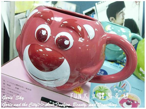 首先是熊抱哥,本來在紙盒上還略顯英氣,到了全家XPixar FUN大立體馬克杯上後,因為整個杯身圓掉了,整個熊抱哥看起來也變可愛了,經典的熊抱哥粉色,大概就只差香香的了 ...,背身上的浮雕立體設計,摸起來還真的是很有觸感和手感。