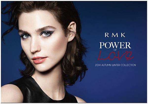 然後,這就是RMK這次的Power Of Love,我自己比較推薦的就是絕色指甲油EX-16光澤海軍藍,以及主視覺模特兒用色的霧光頰采盤04深棕銅,再進而去呼應不完美的愛情才是真正的愛情。