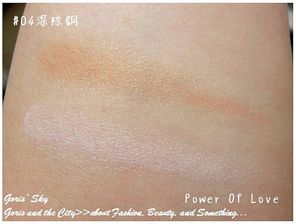 這次的Power Of Love霧光頰采盤其實共有4種配色,包括01自然銅棕、02明亮橘、03淺粉紅、04深棕銅,我的這塊是04深棕銅,也是主視覺用色,因為我喜歡04深棕銅的心型淺粉,同時一旁的深棕又可以用來作為修容,若要混合使用的腮紅色,更會有一種宛如主視覺般的力量感,而RMK的這種打亮粉,總是有一種很RMK的輕亮感,也是一種很日系般的光透感。