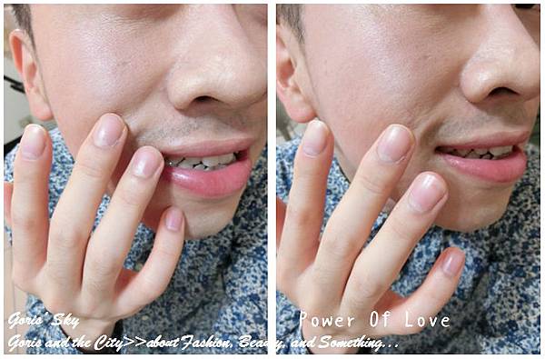 如果說要分開使用,我會在自己故作笑容後,用中間心行的粉紅色打上兩頰最高點(如左),肌膚會有一種輕粉的天真無瑕感,旁邊的深棕修容色的部份,我會去銜接輕粉的線條,用以模糊和修容柔和(如右),這是分開使用,當然你也可以直接使用,直接創造出一種堅毅的拋光感。