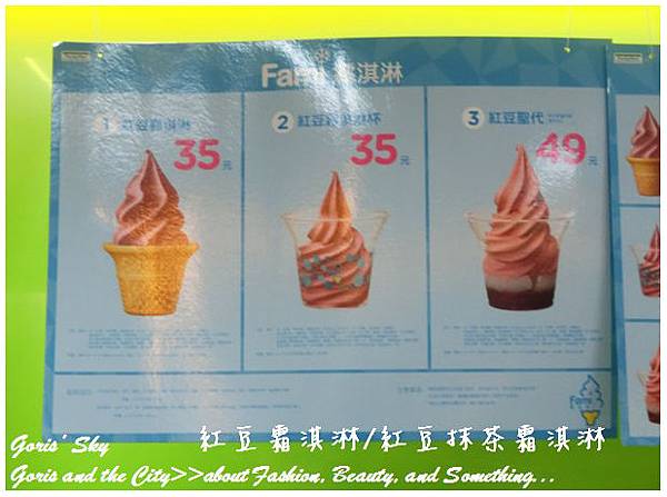 反正...水蜜桃最難吃,聽店員說之前水蜜桃那檔真的業績不是太好................但,紅豆的好吃實在有點勝之不武,畢竟紅豆要做的難吃,真的是太難...,我只會有點覺得紅豆也要賣到35元,有點貴,反正就也是吃這一次,全家操作霜淇淋的行銷策略,不也就是吃一種時尚的感覺...。
