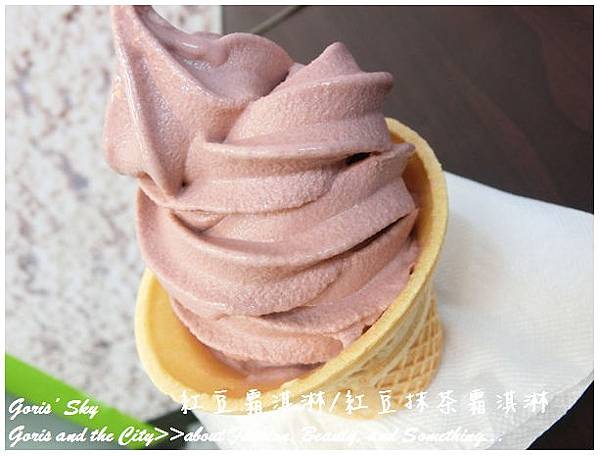 這次的紅豆雙淇淋據說來自經典的萬丹,下面的餅乾的部分,則是日本直送的COCOTTE,有別於之前的長型花瓣,這次就比較像一種杯裝感,有一個好處是比較不會滴出來,但我一直有種錯覺感...就是量變少了?不過,紅豆...蠻好吃的,很像我們小時候常吃的經典的紅豆冰棒,顏色也比草莓來的沉一些,對我來說...我自己主觀想法啦,只要不是做水果口味的,就不會太危險...,但是回到紅豆...,紅豆要做的難吃,似乎也不是太容易,但基本上,是好吃的,紅豆香挺濃,也不會膩,是好吃的,雖然本來就是可以預期的好吃。