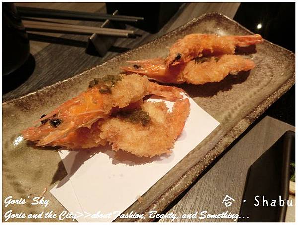 合shabu特別招待的炸蝦,很酥很好吃,特別是蝦頭的部分,都能直接入口,算是鍋物外的小驚喜。