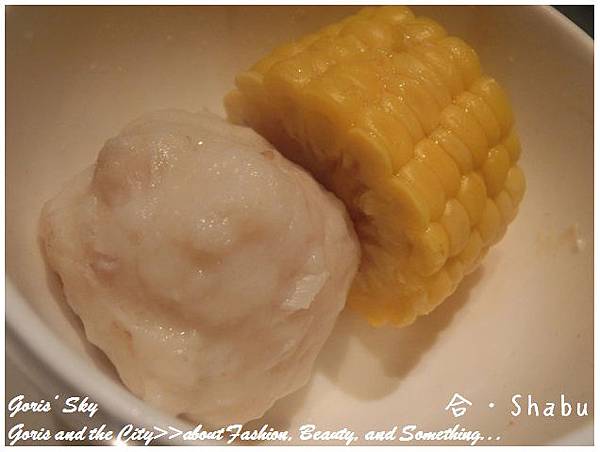 在橘色吃過令人驚歎的玉米後,到了合Shabu依然相當期待玉米的表現,同樣是那種顆粒相當密集的品種,能夠預期至少合橘色一樣的好吃,也確實不令人失望,而旁邊的花枝丸,別看它好像就是個花枝丸...