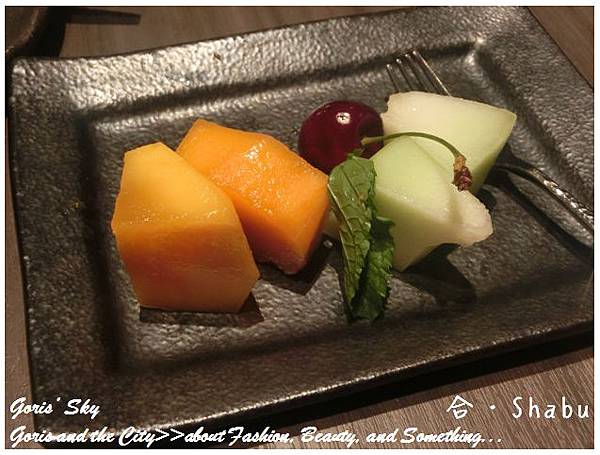 當然,每一份套餐都另外附有前菜、季節時蔬菜盤、食事、水果以及甜點,當然,在我一開始還沒踏入這領域時,只會覺得這些東西都是附贈的,但真的吃過後,才真正覺得,一個頂級鍋物,不單單只是主菜好吃,同時更包括各式的菜盤、前菜等...也都是一樣相當吸引人,吃的是一種精緻,一種極致。