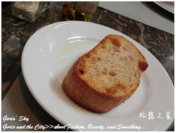 餐前麵包的部分,麵包剛出爐是一種相當燙,同時相當酥脆,相當好吃,一定要在旁邊淋上松露油,剝碎然後沾著吃,可以感受到麵包的燙香,還能品味到帶點松露香氛的清甜油香。