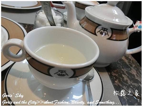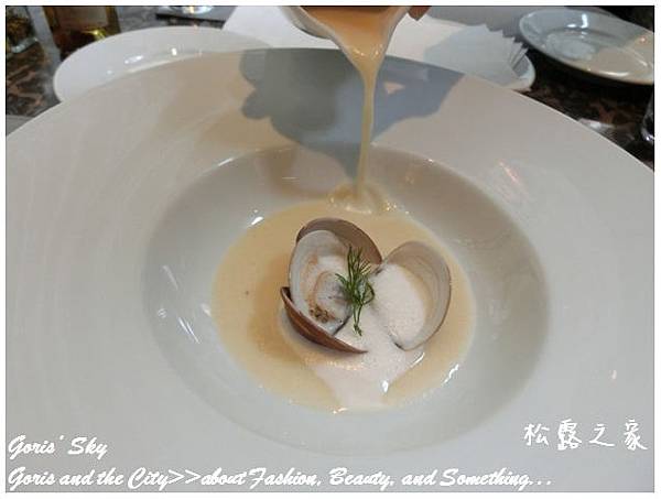 這次去吃的湯品部分相對比較無聊些,爽瓜精礪湯和馬鈴薯青蒜濃湯,松露之家的套餐菜式都會不時地做些調整和改變,之前看到有蝦的或是其他海鮮,反而比較可惜在這次沒有,相對點一個感覺比較有價值的爽瓜精礪湯嚐嚐,同樣也是乾湯的部分,然後再淋上湯汁的菜式方式,湯的味道再融入瓜的清香相當特別,是一種伴隨湯汁的爽瓜香,蛤蠣是清爽新鮮,整體來說,喝的當下覺得很特別,但就樣小小一碗,也很快地喝個幾口,就因為味道整個太heavy,而覺得有些膩。