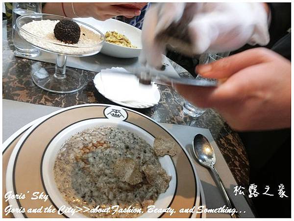 在前菜和湯品之後,等的是有些久,可能因為是燉飯的關係,確實需要些等待,在服務員端上松露之後,就知道重頭戲的主菜以及現刨松露秀就要登場了...