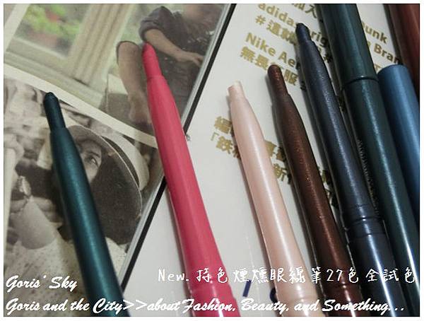 是27色中,最PINK的色彩,甚至都有點螢光粉紅感了,但色調上更多點沉,算是系列顏色中最亮眼的色彩,但也好奇這樣的眼線要怎麼用 ...,顏色繽紛好看,我會覺得這27色中,大概就差一個正紅色吧,結果到底是眼線筆還是唇線筆,都傻傻分不清了。