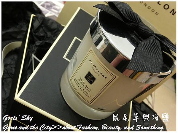 比較難得可以看見黑盒包裝的JO MALONE,一般大多人買香水都是鵝黃盒,搭配黑色的緞帶,如果像是這樣的黑色禮盒,就是以居家產品為主,所以像是這樣的鼠尾草與海鹽工藝蠟燭,就是以黑色禮盒包裝為主,另外,到了聖誕時節,緞帶就會換成紅色的大概是這樣的簡單區別,感覺JO MALONE買的已經不單單只是一個香氛品,更是一個精品,一個禮盒,看著家裡的JO MALONE禮盒越疊越多後,反而都成為另一種的裝飾感。