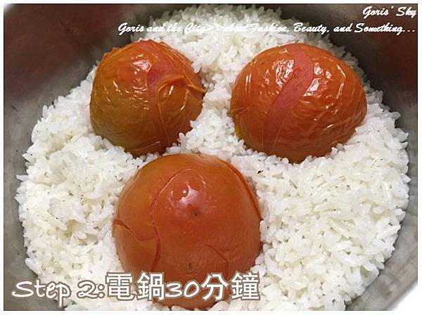 做法上,就是一般的洗米、煮米,電鍋基本上是和你所用的米採同比例放水,例如三杯米,就放三杯水,不過因為我想說番茄感覺水分很多,所以我比平常又少了半杯水左右,另外,會建議可以倒入些橄欖油,撒上一點黑胡椒,作為提味用,然後就可以送進電鍋蒸了。